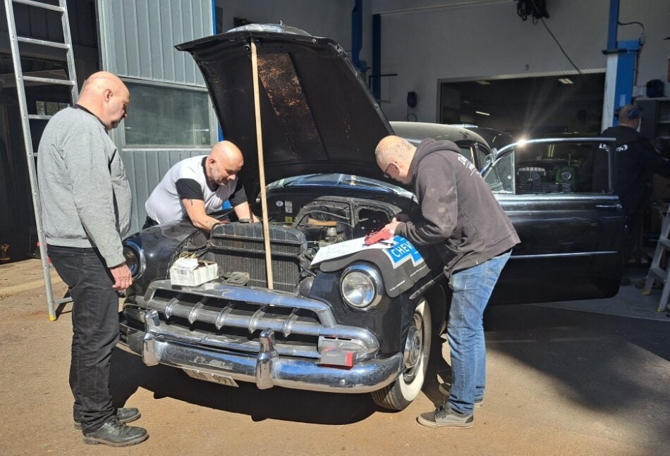 Chevrolet Styleline DeLuxe 2102 fra 1952 ejes af Göran Schüsseleder, kommunikationsansvarlig i MHRF. Bilen får blandt andet opgradering til 12V-system, interiørdetaljer og polering for at blive klar til MHRF-forsikringens tiårskontrol.